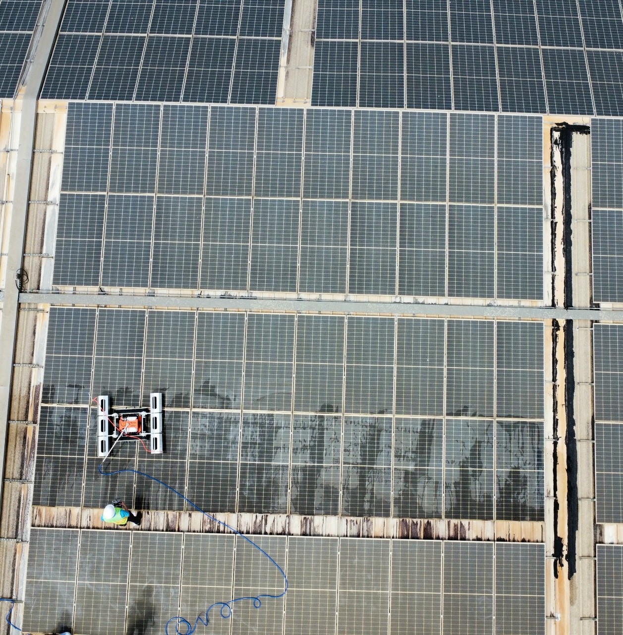 Làm sạch tấm pin để loại bỏ bụi, lá cây, đảm bảo hấp thụ ánh sáng tối đa và tăng hiệu suất.